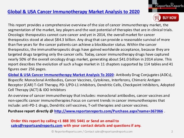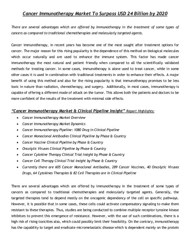 The new classes of cancer immunotherapies hold great, exciting going to have to take a discount to get the drug on the market. As the immunotherapy market expands with more drugs and ... Return Doc
